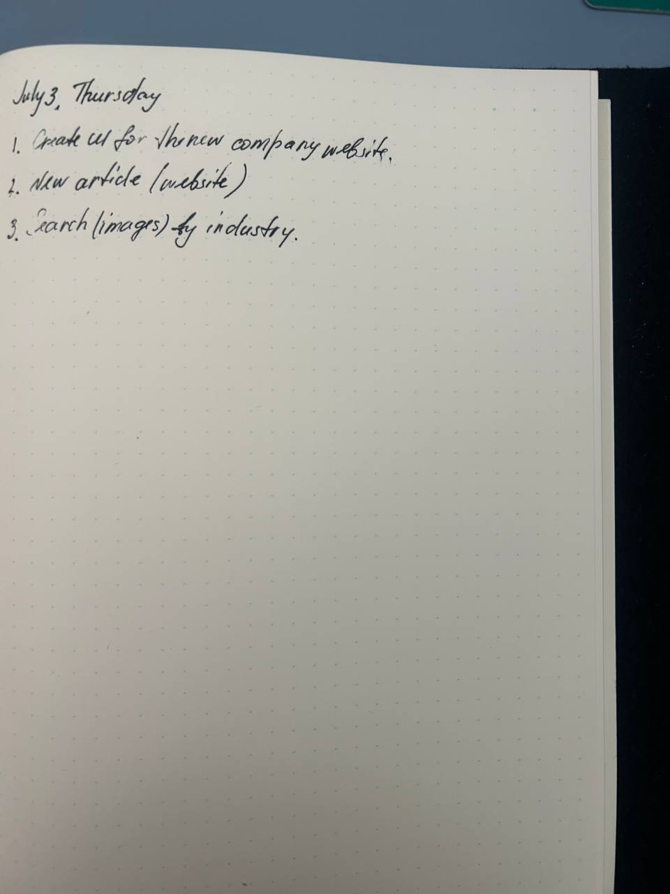 When a new day begins, I set aside either a full page or half a page. The structure is simple: date, day of the week, key tasks, and a blank space. I never write more than 3 tasks per day, but I commit to completing all of them with 100% focus.