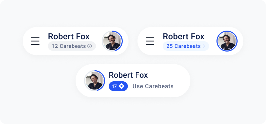 To address these challenges, our team designed a comprehensive loyalty system. Practitioners and nurses receive bonuses for completing specific AI-driven tasks that are billable to the healthcare practice. To make these bonuses more personalized and aligned with the healthcare context, we’ve decided to name them Carebeats.